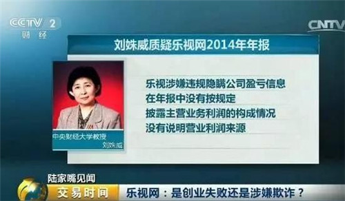 緊接著2015年6月底,曾經揭露藍田股份造假的中央財經大學教授劉姝威,也質疑樂視涉嫌違規隱瞞公司盈虧信息,在年報中沒有按規定披露主營業務利潤的構成情況,沒有說明營業利潤來源。
