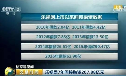 根據wind數據統計,自2010年上市七年時間里,樂視網累計融資超過300億元。
