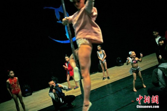 10月28日晚,2015中國鋼管舞錦標賽決賽在天津落幕。參加少兒組比賽的小選手們成為當晚賽場的焦點,她們最小6歲,最大15歲,其表演的技巧難度與成年參賽者相當。 中新社記者 佟郁 攝