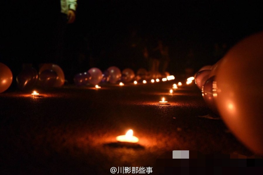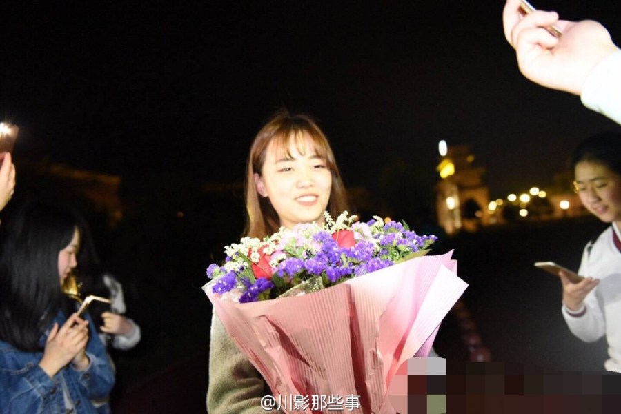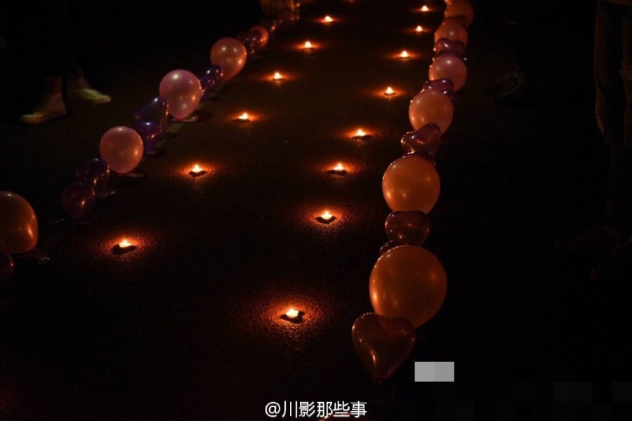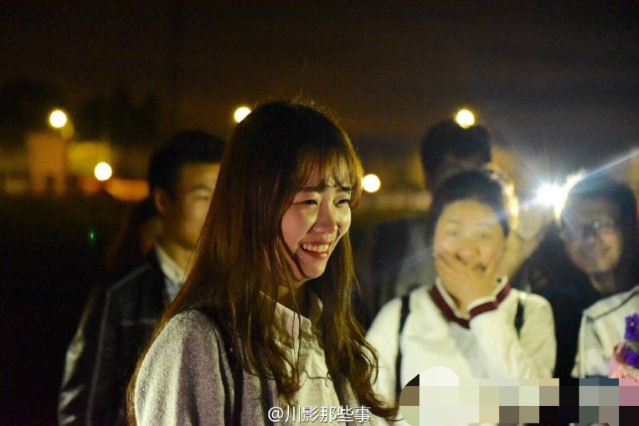 這不是求婚!4月6日晚,四川電影電視學院操場上川影2015級編導六班的同學們給美女輔導員過生日,全班男生單膝跪地唱《小幸運》。