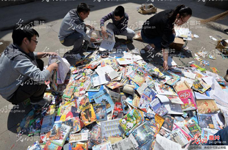 日前,河北省邯鄲市“掃黃打非”領(lǐng)導(dǎo)小組辦公室組織開展“2016年邯鄲市侵權(quán)盜版及非法出版物集中銷毀”活動(dòng)。圖為工作人員現(xiàn)場(chǎng)銷毀侵權(quán)盜版及非法出版物。郝群英攝/光明圖片