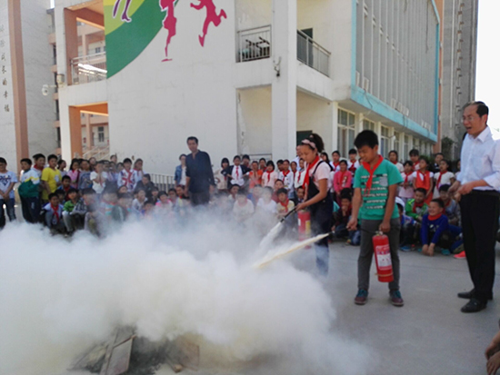 安全疏散演練完畢后,學校安全員為孩子們講解了校園防火、使用滅火器知識,以及火場逃生自救方法等消防安全常識,并現場指導師生干粉滅火器的使用方法。各班選出學生代表以及部分教師用滅火器進行了現場滅火,參與活動的師生嚴格認真地按照滅火方法進行著操作,燃燒的“火魔”瞬間被“消防員”撲滅,場上觀看的師生報以熱烈的掌聲。