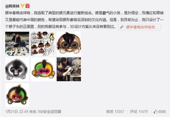 春晚吉祥物康康由“福娃”的創作者之一韓美林設計,官方稱是以中國傳統水墨畫的藝術形式,生動表現出“猴”的機靈活潑特點??纯错n老師的手稿,也是能get到喜慶的氛圍和毛茸茸的手感,還算是只討人喜愛的猴子↓