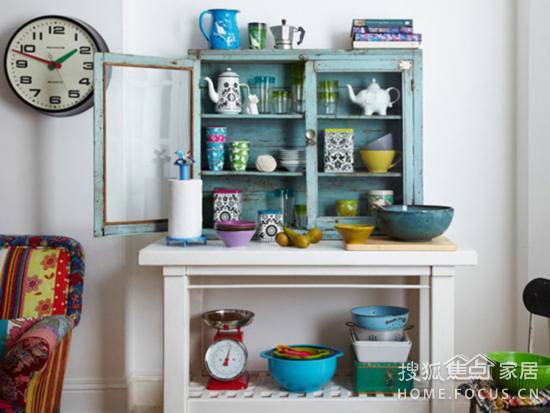 如果現在的餐具不能滿足你的喜好,你可以準備一些復古的餐具,讓彩色的碗和罐子都能成為廚房的亮點。
