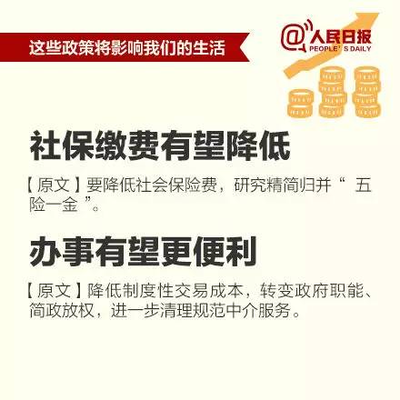 這次會議還用十個“更加注重”指明了新常態下應該“怎么干”。更為關鍵的是,這個看似“高大上”的經濟工作會議,其實離你我并不遙遠:社會保險費有望降低、非戶籍人口也能住公租房、鼓勵房企適當降房價……中央敲定下的這些事,新的一年毫無疑問將給你我生活帶來深刻影響。