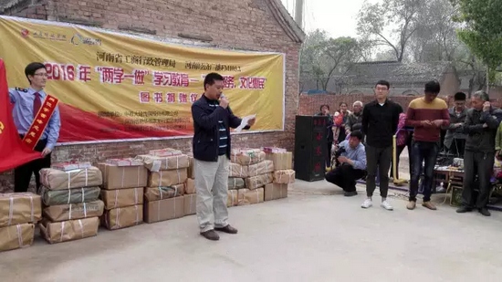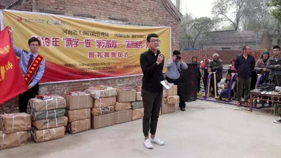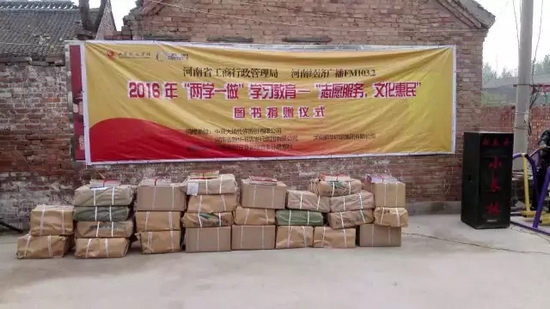 今天,河南省工商局聯合河南經濟廣播FM1032開展“兩學一做”志愿服務文化惠民圖書捐贈活動,來到封丘縣荊隆宮鄉孫蔡寨村。
