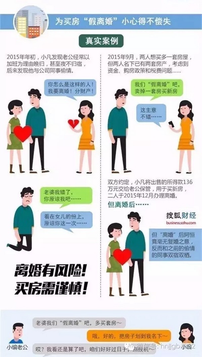 為了應對購房新政,離婚買房成為當下熱點話題。但是需要提醒的是,為買房辦理離婚必須有一個前提,就是配偶一方必須凈身出戶,才能以首套房再購買。而在法律效力上,并沒有假離婚一說,一旦一方反悔,假戲真做,或者是一方以“假”為名達到“真”的目的,另一方后悔也來不及了。