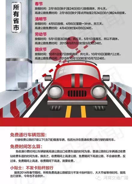 2015年春節(jié)放假安排時(shí)間表已經(jīng)出爐,春節(jié)高速公路免費(fèi)時(shí)間具體從哪天開始?持續(xù)多長時(shí)間?哪些車型可以免費(fèi)通行?