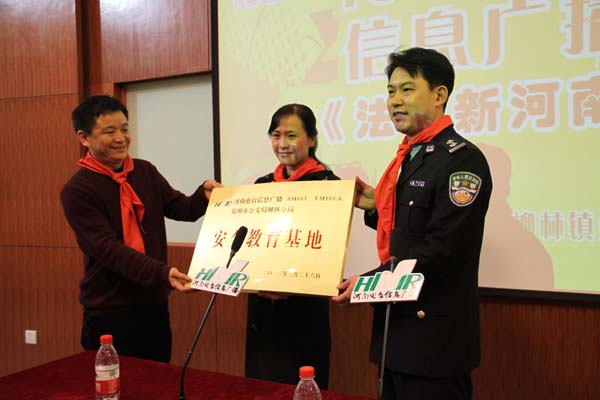 2012年3月26日是第十七個“全國中小學安全教育日”,在教育日當天舉行“中小學安全教育基地”掛牌儀式,河南電臺信息廣播依托日常欄目《法制新河南》的整合資源,將中小學安全宣傳教育常態化。據河南電臺信息廣播總監李金鋒介紹,“教育基地建立以后,河南電臺信息廣播將聯合鄭州市公安局柳林分局,通過信息廣播AM603、FM105.6廣播頻率,以《法制新河南》欄目為陣地,長期持久的宣傳中小學安全教育知識,并為柳林鎮第四小學的學生提供書籍、器械等安全教育的物品,節目主持人和柳林分局的警官還將不定期的深入校園內,跟學生們面對面的交流、一對一的輔導。”