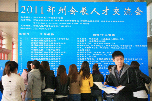 2011年10月30日,由鄭州市會展工作管理辦公室主辦,河南電臺信息廣播提供媒體支持的鄭州會展人才交流會在鄭州國際會展中心盛大舉行。別開生面的校企交流會上,數十家知名會展企業在現場招聘會展專業的策劃、設計、營銷類人才。