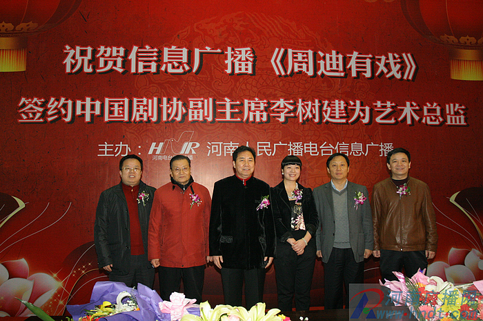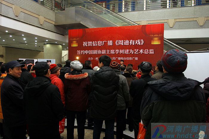 1月17日上午,河南人民廣播電臺《周迪工作室》掛牌儀式及中國戲劇家協會副主席李樹建先生受聘《周迪有戲》欄目藝術總監簽約儀式在廣播大廈一樓大廳舉行。河南人民廣播電臺副臺長李海軍、河南人民廣播電臺信息廣播總監李金鋒出席儀式。