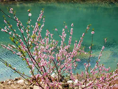“人間四月芳菲盡,山寺桃花始盛開”。在山水環繞、風景迷人的八里溝景區內,正是桃花怒放、紅艷欲滴的大好時節。沒有來得及擁抱初春、拂春、探春之旅的游客,可以動身來一場鬧春之旅,“蝶兒飛、鳥兒忙、山水鹿鳴齊歡暢”的八里溝景區聲色正濃,鬧春正當時! 桃花灣紅艷欲滴,山水環繞,風景迷人,桃樹滿山,春來桃花怒放,紅艷欲滴,所以叫“桃花灣”。由于遠在深山春來遲,花開花謝都較山下晚。唐代大詩人白居易的“人間四月芳菲盡,山寺桃花始盛開”正是最好的寫照。花叢的蜜蜂、蝴蝶忙著嬉戲,桃花與泉水相映成趣,它們豐富的豈止是山谷的神韻,更多的是大自然與游客心靈上對聲色春天的共鳴。