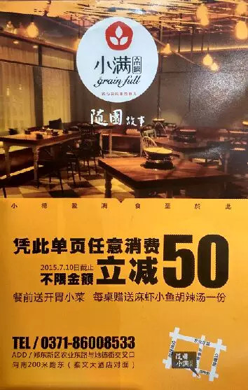 還未正式營業,憑此微信進店消費不限金額,立減50元,還有小菜相送,截止日期7月10日!