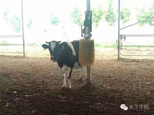 自動(dòng)按摩器:只要奶牛觸動(dòng)它,它就開始旋轉(zhuǎn),可以對(duì)奶牛進(jìn)行按摩。這些奶牛也有“組織”,誰(shuí)先誰(shuí)后來(lái)按摩都有“規(guī)矩”。