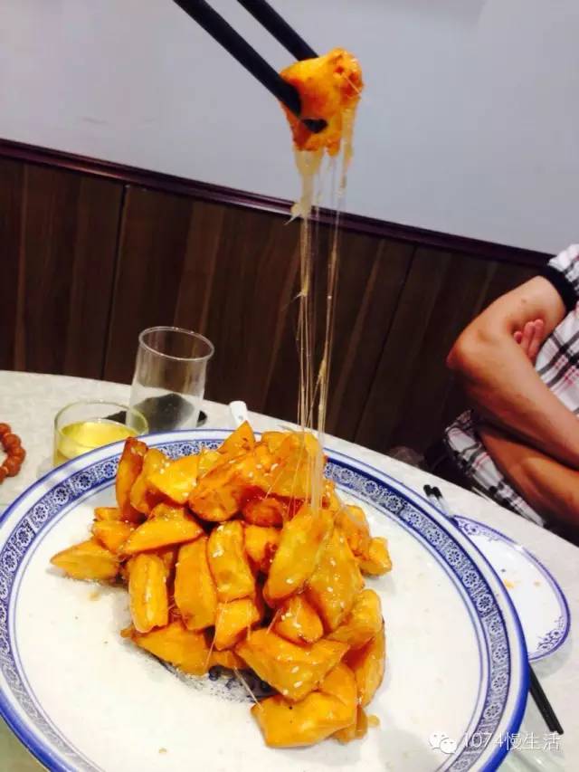 吃完了硬菜,總需要來道餐后甜品吧?拔絲類的菜品就算是咱們中式菜中的甜品了,看這拔絲的效果就知道廚師的手藝如何,長長的拔起,再往冷水里沾一沾,好吃好玩兒,吃出了童年的感覺啊!