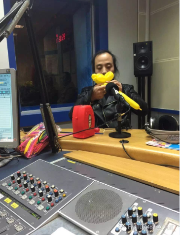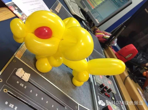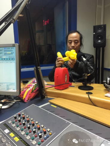 河南電臺1074綠色頻道直播間,胡耀輝現場做起了氣球玩偶。