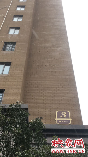 映象網訊 (記者 柴可 文/圖)鄭州長江一號K區剛交付幾個月,樓房外墻就出現大面積空鼓,并有墻面脫落,幾年來愈演愈烈。