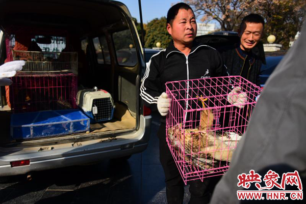 13日下午14時許,鄭州市人民公園西門口,鄭州市林業(yè)局野生動物救護站的工作人員將幾只鐵籠子分別裝上面包車。籠子里裝著的是救護站近段時間救護的已經(jīng)具備放生條件的鳥類和獸類,這些動物將在自然條件比較優(yōu)越的新鄭市具茨山放生。