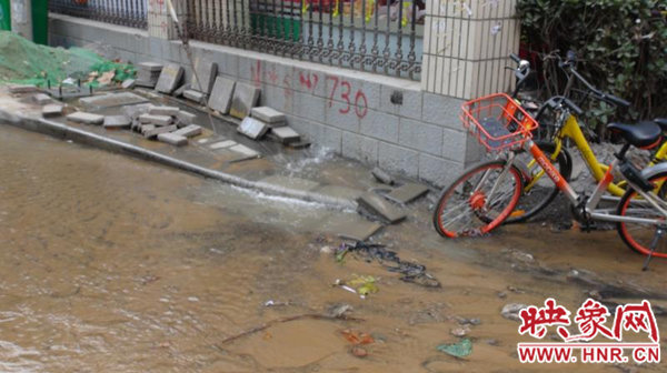 早上6時30分許,未來路辦事處巡防隊員司廣紅等人發現居民因小區積水,出行困難,用磚塊鋪路,方便居民進出。由于不明確是自來水管道還是熱力管道發生了爆裂,巡防隊員也找不到附近的閥門,只好先撥打鄭州城建服務熱線12319反映此事。