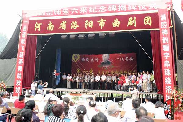 5月9日,由河南省藝術(shù)研究院、省戲劇家協(xié)會(huì)、省戲曲表演學(xué)會(huì)、洛陽市文廣新局、洛陽市戲劇家協(xié)會(huì)、洛陽市曲劇院主辦的,曲劇宗師?一代名伶朱六來先生紀(jì)念碑揭碑儀式在其故里洛陽市關(guān)林鎮(zhèn)大東村舉行。來自省內(nèi)的著名戲劇評論家、劇作家馬紫晨,河南省藝術(shù)研究院院長方可杰,戲劇評論家譚靜波,曲劇老藝術(shù)家劉衛(wèi)生、馬騏、牛長欣、高桂枝、郭鳳娥等,以及各地市兄弟院團(tuán)代表參加了本次揭碑儀式。同時(shí),著名曲劇表演藝術(shù)家“曲劇泰斗”馬騏,有南牛北馬之稱的南牛著名曲劇表演藝術(shù)家牛長欣,以及各兄弟院團(tuán)的著名演員獻(xiàn)上了精彩的專場演出。