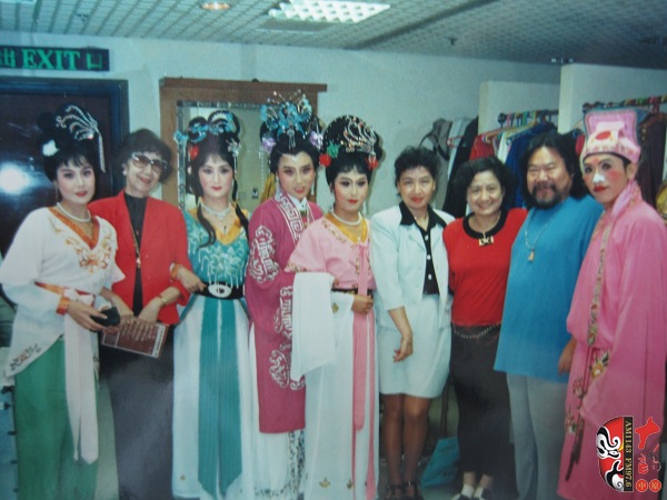 1996年武慧敏(左三)赴港演出《風流才子》在劇中飾秋香,演出結束在后臺與香港友人合影