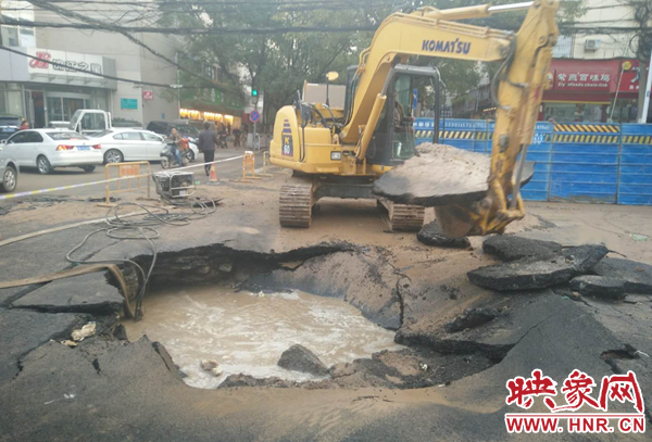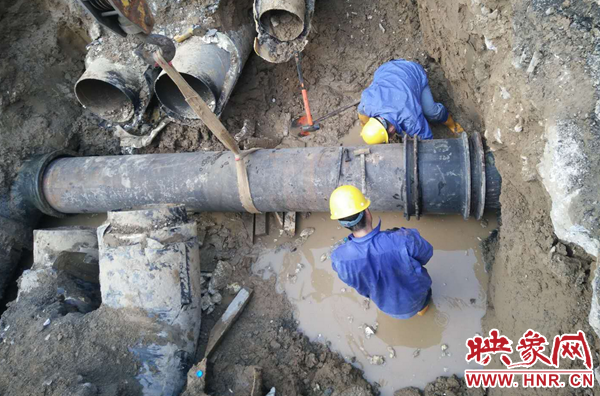 鄭州自來水公司迅速組織維修人員到場搶修。負責該區域維修任務的三強公司政七街維修隊維修一班第一時間趕赴現場止水、搶修。維修人員分班作業,一組擺放警示標志,協調交警封閉道路,一組緊急關閉相關閥門實施止水,調運搶修機械、安排送水車趕往現場。