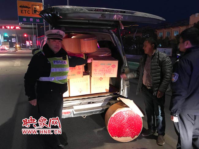 面包車拉載42件煙花爆竹上高速 被周口民警查獲
