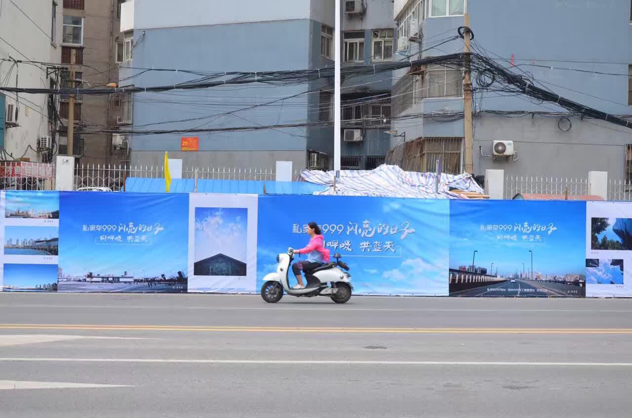 “這圍擋挺漂亮的,藍天白云的,看著心情也挺好的。”
