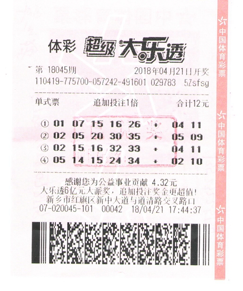 張先生這張中獎的彩票上,共有四注,屬單式追加投注,票面金額12元。據張先生介紹,前兩注是他從體彩銷售網點推薦的號碼中選出的,后兩注是他長期守號的號碼,這次是第二注讓他幸運的斬獲大獎!