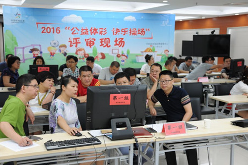 評審工作分四組進(jìn)行,每組評審人員首先對報名學(xué)校提供的基本情況進(jìn)行逐項(xiàng)了解,同時,通過學(xué)校提供的校園、現(xiàn)有操場、器材室等實(shí)景照片,對是否提供捐贈進(jìn)行綜合打分。最后由工作人員對每組評委的打分進(jìn)行匯總,按照每所學(xué)校得分高低進(jìn)行排序,前25名的學(xué)校入圍2016“公益體彩 快樂操場”(河南)實(shí)地考察名單。