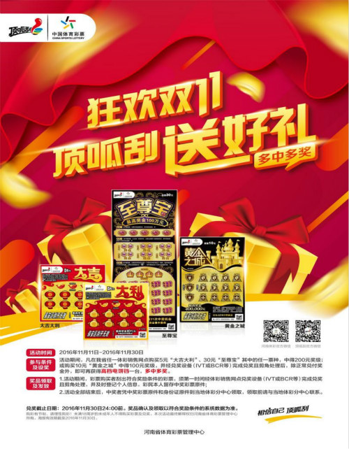 河南體彩推三大“珍品” 中獎再送“雙十一”大禮!