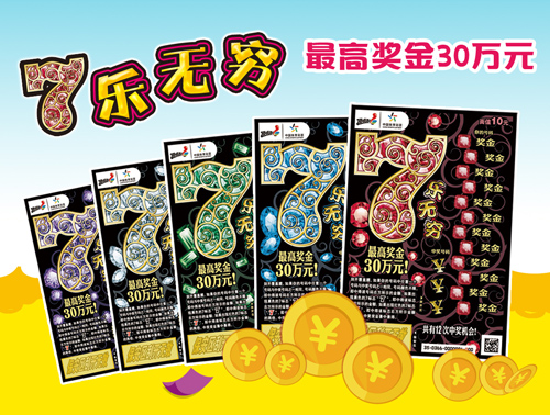 近日,“頂呱刮”家族又一新成員——“7樂無窮”火熱登陸我省,此票是一款數字類主題即開票,面值10元,頭獎30萬元,共有12次中獎機會。