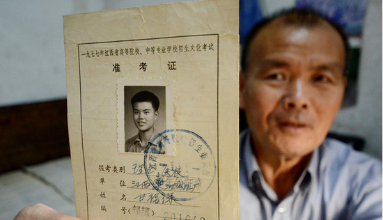 1978年夏天,迎來恢復高考后的第二次考試,考試結束后,甘福保跑到高招辦買了試卷回來自己做,從此后,他就一發不可收拾,每年高考都會買一份試卷回來,一直堅持到2016年的高考。圖為甘福保展示當年高考時的準考證。