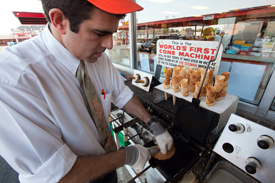 諾福克市的豆瑪冰激凌店(Doumar's)因艾比?豆瑪在1904年的圣路易斯世界展覽會(huì)上發(fā)明了美國(guó)第一支蛋卷冰激凌而聞名于世。嘗一下百年蛋卷機(jī)做出來(lái)的冰激凌,還是那古老而甜蜜的味道。