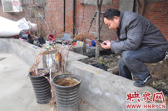 在“蝸牛之家”賓館專用停車場東南角,記者和執法人員看到有3個花瓶,其中一個花瓶的泥土被挖出,非常新鮮。“基本上可以確定,糊在白蠟樹上的泥土來自這個花瓶。”