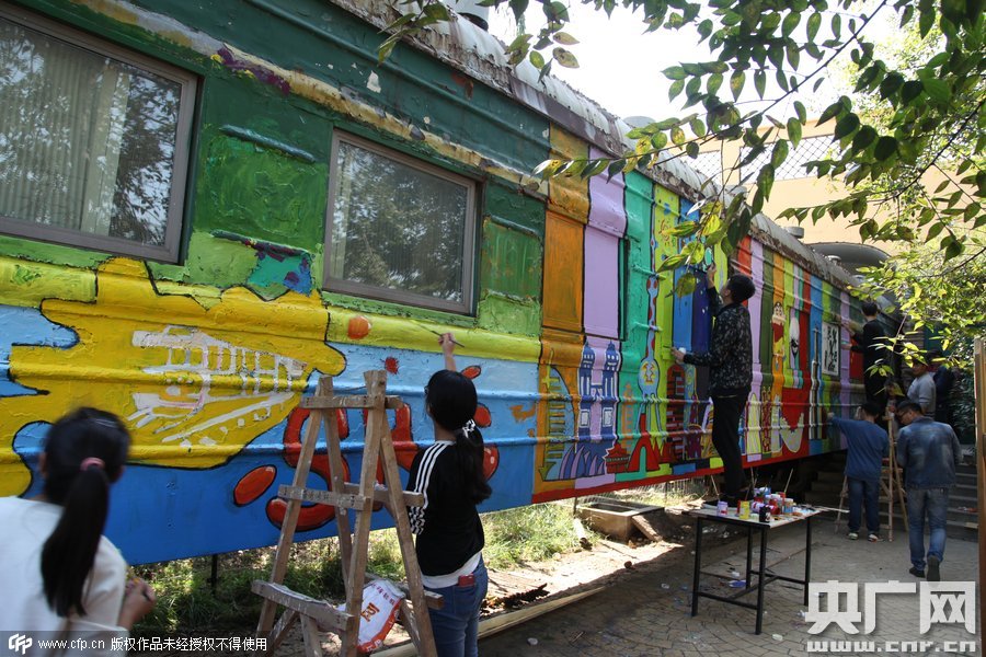 2015年10月10日,鄭州四禾美術中學充分發揮美術生的優勢,對火車車身1進行涂鴉改造,使火車宿舍看起來更加漂亮。