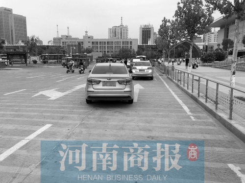 到下午1點20分,河南商報記者看到一輛印有“行政執法”的皮卡在用喇叭驅趕公交港灣內車輛,但是幾輛車只是象征性地挪了幾米遠,并沒有駛離,反倒是那輛執法車,在喊了兩分鐘后開走了。