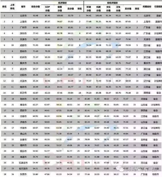 進(jìn)入中國百強(qiáng)城市榜的河南城市有:鄭州(第15位),洛陽(第62位),新鄉(xiāng)(第89位),南陽(第90位),許昌(第94位),周口(第98位)。在2015年的排行榜上,鄭州排名第18,而今年上升了三位到第15名,和去年相比進(jìn)步了3個(gè)位次。這一次的榜單中,洛陽排名第62位,進(jìn)步了4個(gè)位次。新鄉(xiāng)市是首次入榜,南陽、許昌、周口緊隨其后。
