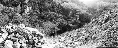 黃葉綠葉紅磚塊,美景與建筑垃圾緊緊挨在一起。