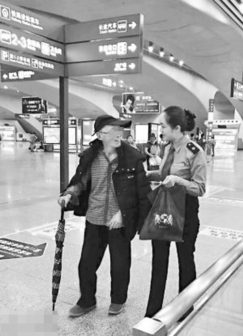 王娟拿著老人的一代身份證,通過河南省公安廳查詢到老人孫女吳女士的電話號碼。家人實在不放心老人獨自旅行,請求工作人員送老人回家。最終老人被說服,坐上了返鄭的列車。
