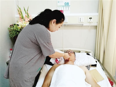 妻子在照顧受傷交警馬衛東