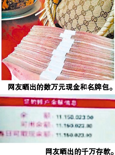 對(duì)于兩位網(wǎng)友炫富事件,黑龍江大學(xué)心理學(xué)專(zhuān)家認(rèn)為,從兩人談吐中可以看出,兩人可能都是“富二代”,這樣炫富一是炫耀一下自己的“身家”,從而滿足虛榮心;二是借著炫富博出名。如果大家不評(píng)論,不鼓噪,他們自然偃旗息鼓。