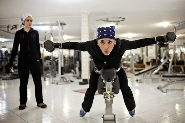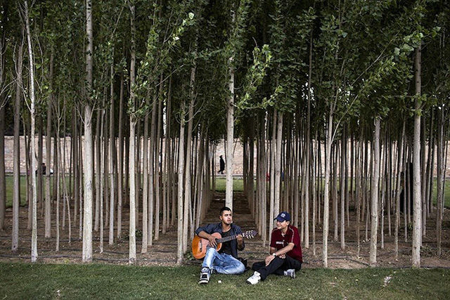 盡管照片中的人顯得很輕松,但對拍攝照片的Fatemi來說卻十分不易。這個攝影師花了數月才被允許進入女性健身房、發廊等。很多人不愿意被拍到臉,怕被認出來;很多人取消了預約,怕因此丟了工作。雖然存在著種種困難,Fatemi還是取得了驚人的成果,為伊朗和外界拍攝了包羅萬象的精美照片。圖為私人搖滾音樂會。搖滾音樂在這里是被禁止的,所以這類表演一般都很隱秘的。