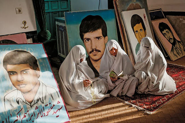 在兩伊戰爭中犧牲的烈士的母親,正在兒子墓地周圍祈禱著,周圍是他們的肖像。