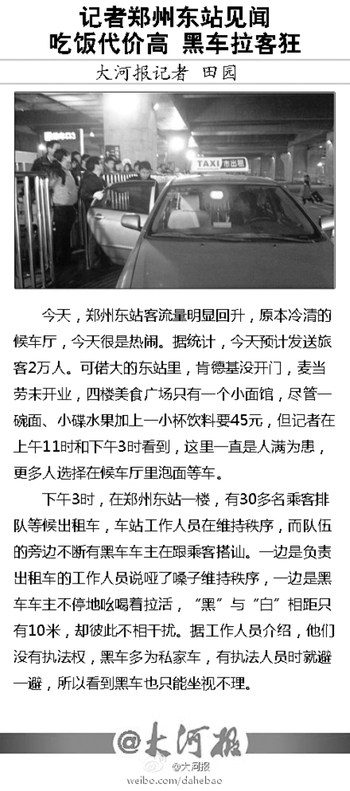 鄭州東站吃碗面45元 "黑車"與"白車"搶客