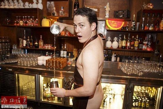 餐廳里的服務(wù)員們都只穿著裸色的內(nèi)褲,并在腰上圍著樹葉。看上去很有古希臘風格。