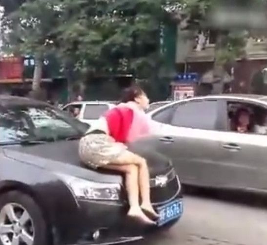據說這名女子經常出沒在這帶上演人車大戰。路上的小轎車司機看見她就十分的頭痛。因為她專找小轎車下手。其實也不傻!今天又出現在村里的小吃街上了,鎖定黑色雪佛蘭。二話不說就上了它!其實就她的一些小計倆,路邊的人都心知肚明了,誰叫她精神有點不好呢!