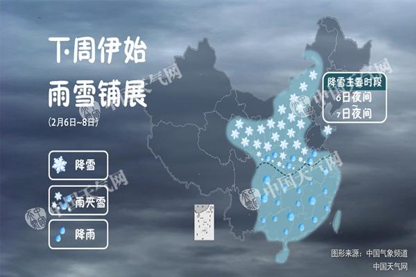 不過,今天開始隨著一股冷空氣影響我國,中東部將出現大范圍雨雪天氣。中央氣象臺預計,2月6日至8日夜間,西北地區東部、華北、黃淮中西部將有小到中雪,陜西關中、河南南部、湖北西北部、安徽沿淮地區、江蘇中北部等地有雨夾雪或雨夾雪轉雪,上述局部地區有大雪;西南地區東部、漢水下游、江淮、江南和華南等地有小到中雨。