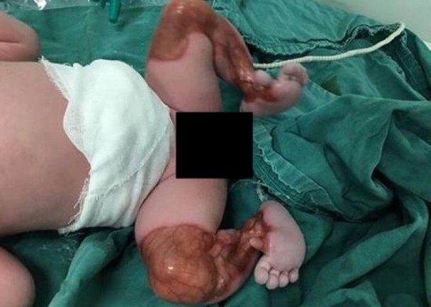 【新生兒雙腿透明 憑肉眼可見肌肉和毛細血管】2017年3月25日報道,浙江溫州一醫院在2月迎來一名下肢奇特的男嬰,經診斷證實患上小于十萬分之一機率的罕見病,該病會令雙腿皮膚透明,不但死亡率較高,且并無效診療方案。