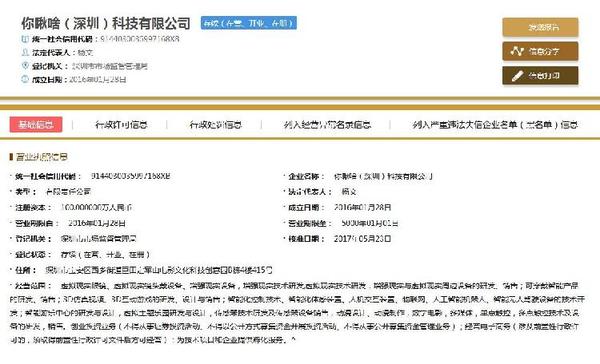 2016年9月,一家深圳公司注冊成功,名為“深圳市賺他一個億電子實業有限公司”,這家注冊資本100萬元。